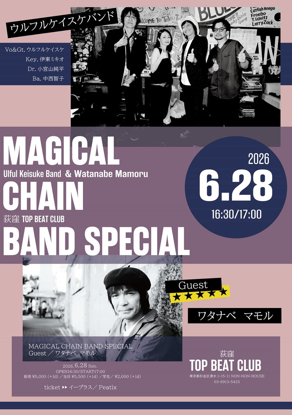 チケット料金:前売¥5,000 / 当日¥5,500(いずれも税込・1ドリンク代別)