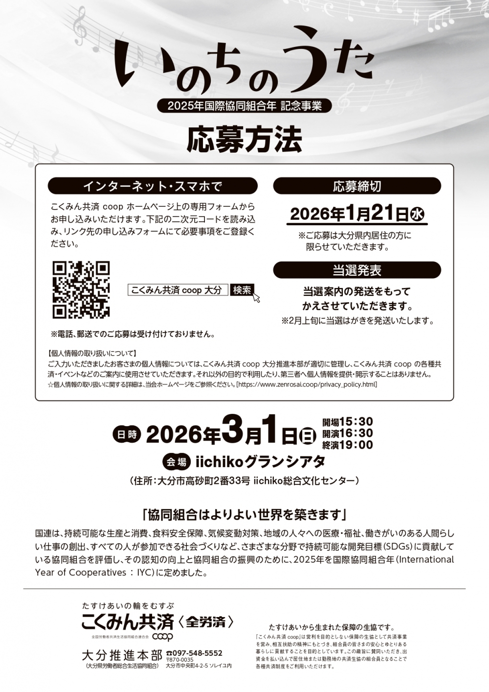 2025年国際協同組合年記念事業「いのちのうた」【大分】 NEW